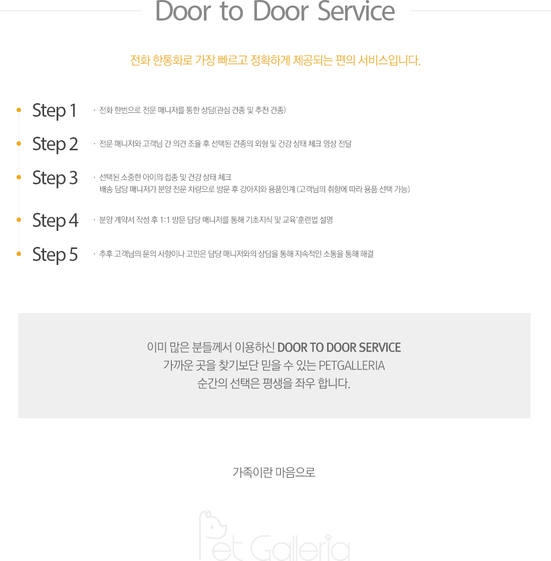 펫갤러리아의 찾아가는 서비스 입니다.